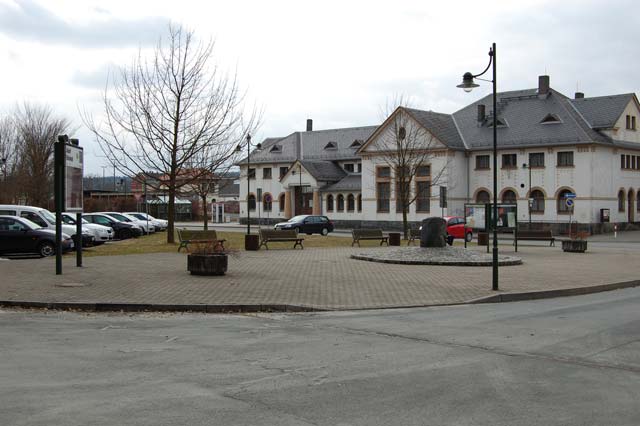 Bahnhof Adorf/V.: Empfangsgebäude und Vorplatz.
