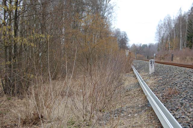 Die Trasse schwenkt westwärts in die Elsteraue ein und endet seit 1949 nur knapp 100 Meter weiter