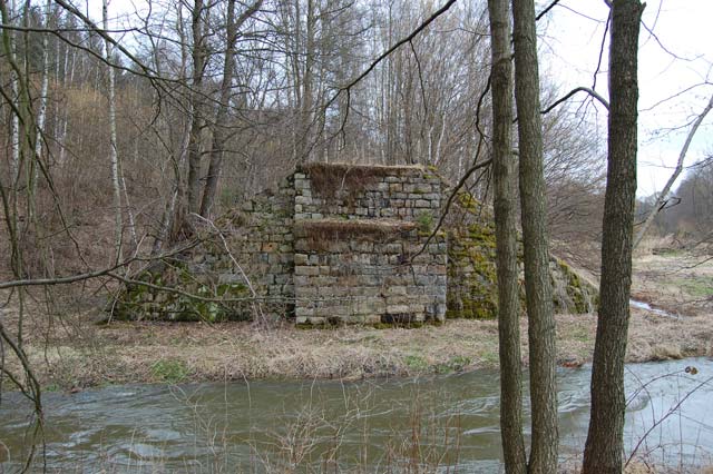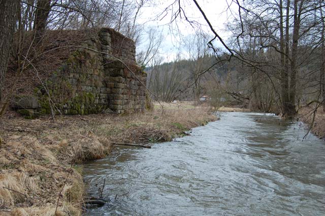 Widerlager (Adorfer Seite) der seit 1949 fehlenden Brücke über die Weiße Elster.