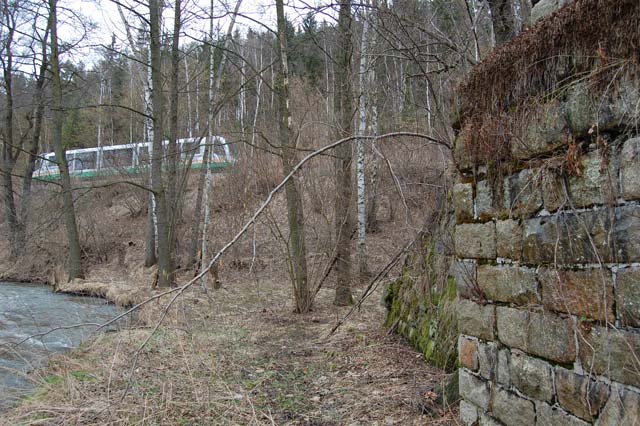 In einer Höhe von ca 4,50 m überquerte hier einst der "Mockel" die Weiße Elster.