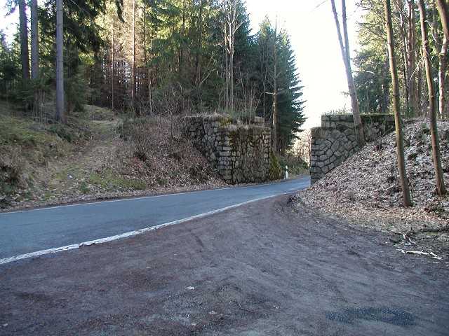 Ruine der Bahnbrücke an der Straße von Adorf nach Gettengrün beim ehemaligen Bahnhof Arnsgrü-Gettengrün.