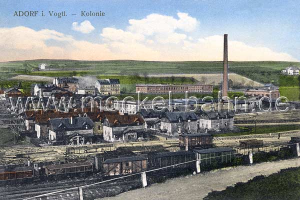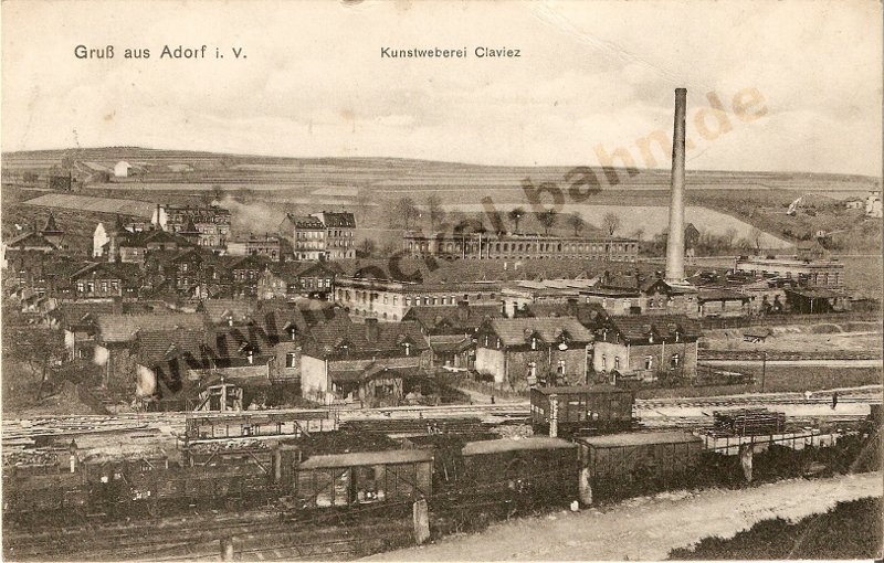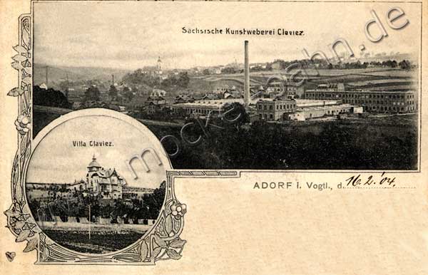 Adorf 1904: Claviez-Werk an der Oelsnitzer Straße. Nur zwei Jahre später fuhr hier der Roßbacher Mockel