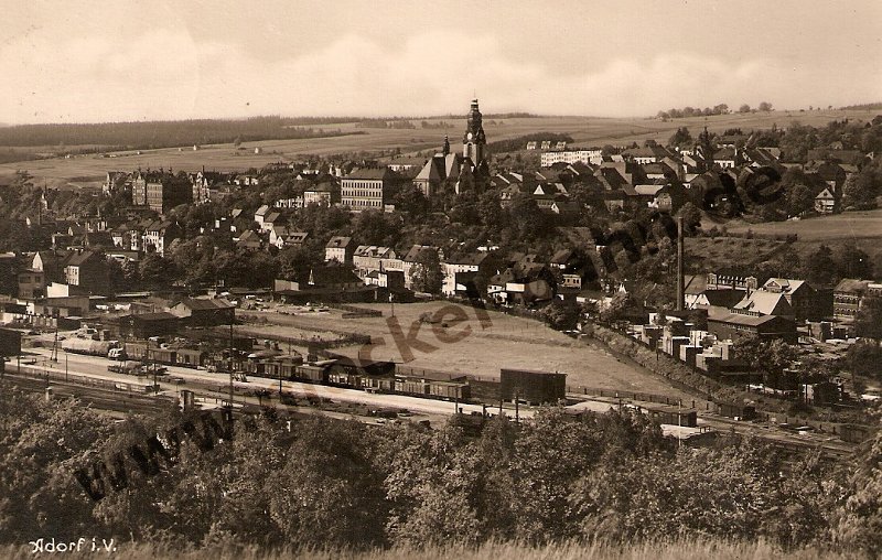 Oberhalb der Oelsnitzer Straße entstand 1931 dieses Foto mit Blick auf den Bf. Adorf. Sammlung Peter Jacob