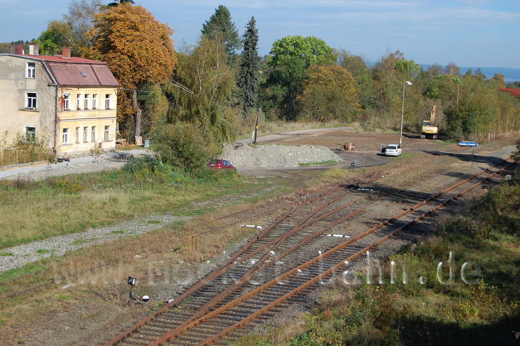 Oktober 2014: Das Bahnhofsgelände in Roßbach/Hranice kurz nach dem Abriss des historischen Bahnhofsgebäudes. Foto: Thomas Schindel