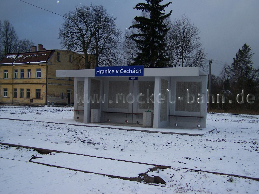 Ein Betonwartehäuschen ist nun seit Dezember 2014 der Ersatz für das aufgelassene, historische Bahnhofsgebäude. Foto: Karel Künzel