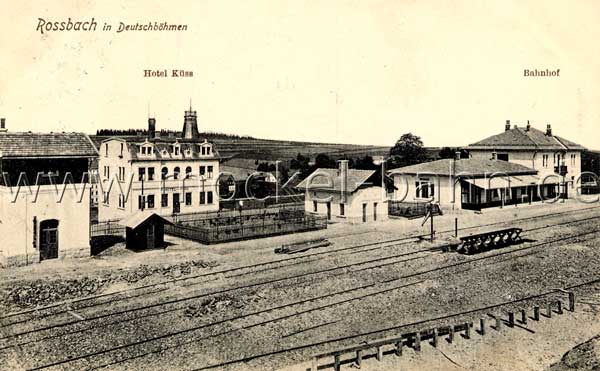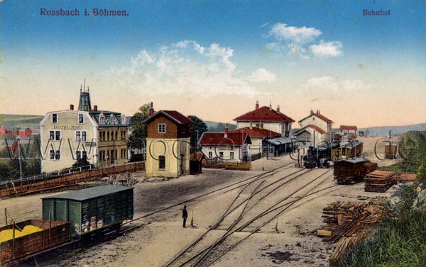 Zugbetrieb am neuen Rossbacher Bahnhof, um 1910. Sammlung Martin Novák-Rutrich