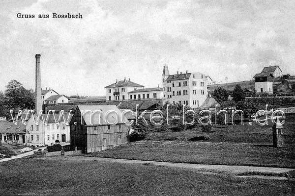 Roßbach um 1900, oben links der alte Bahnhof. Sammlung Peter Schindel