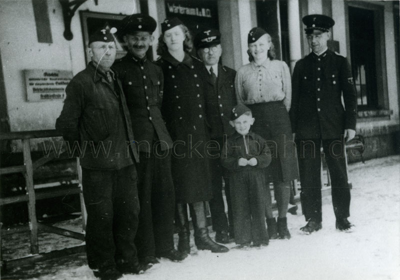 Personal vor dem Bahnhof Rossbach, das Foto entstand 1943. Sammlung Werner Pöllmann