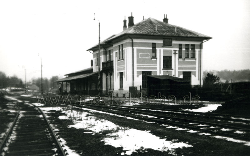 Blick vom Ort auf die Rückseite des neuen Bahnhofs in Rossbach. Sammlung Wolfgang Martin