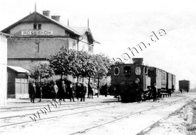 Der 'Mockel' macht Station am Bahnhof Rossbach, um 1920. Sammlung Martin Novák-Rutrich