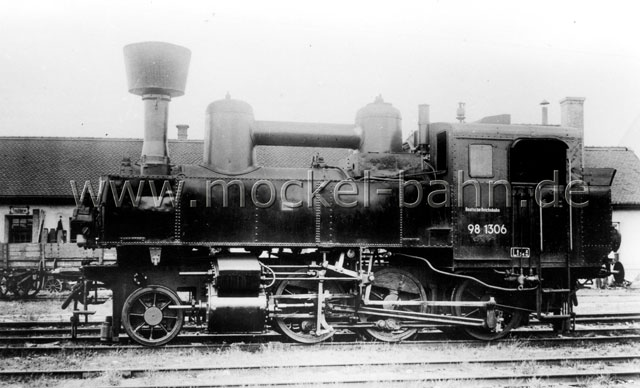 98 1325 (ex ČSD 320.001), ohne Kobelschornstein, steht abfahrbereit nach Adorf auf dem Bf Freiberg (Vogtl). 1940. Sammlung Wilfried Rettig
