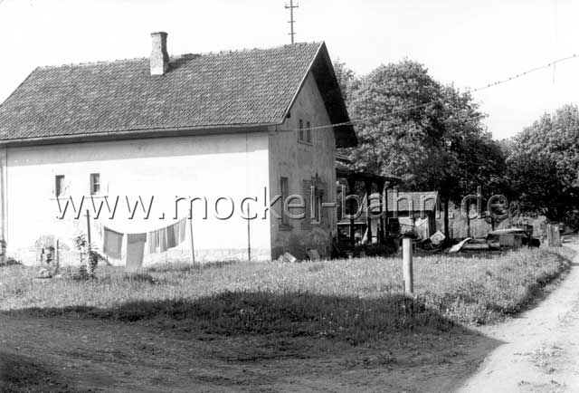 Der ehemalige Bahnhof Arnsgrün im Mai 1985. Das Gleis 1 folgte dem Weg links. Sammlung Wilfried Rettig