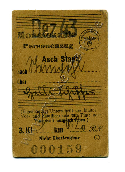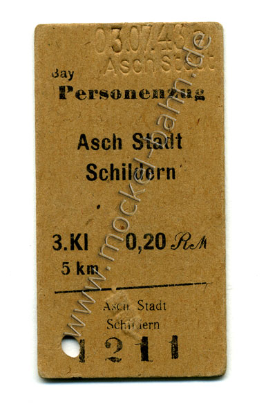 Fahrkarte 3. Klasse von Asch nsch Schildern (1943). Sammlung Thomas Schindel