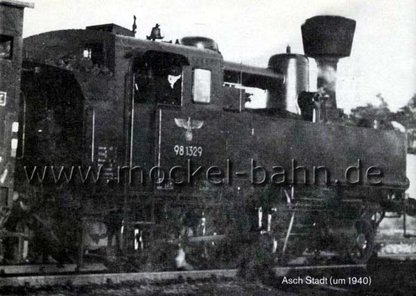 Betriebsbahnhof für diesen ČSD-Inselbetrieb war Asch Stadt mit einem dreiständigen Heizhaus, umgeben von einem hohen "abschirmenden" Bretterzaun. In ihm wurden mehr Reparaturarbeiten als sonst üblich ausgeführt. Denn das Überführen einer Lok kostete Geld, weil die DR darauf bestand, daß die ČSD-Lok von einer DR-Maschine zwischen Asch Reichsbahnhof und Eger begleitet wurde. Deshalb beschränkte die ČSD diese Überführungen auf unvermeidbare Generalinspektionen in Pilsen.